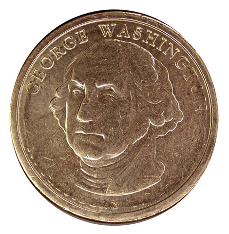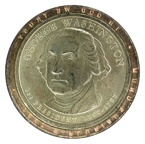 Photo #1a: George Washington $1 Coin, obverse with exploded view of edge lettering.