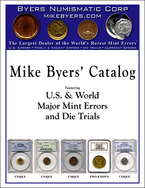 Mike Byers has just announced his Catalog Featuring U.S. & World Major Mint Errors and Die Trials. For more information and to download this catalog, click here.