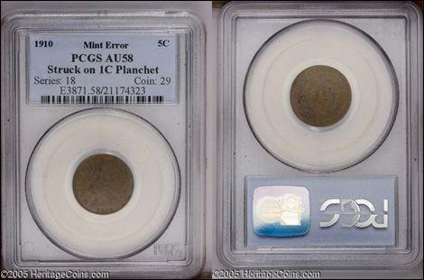 1910 5C Liberty Nickel--Struck on a Cent Planchet--AU58 PCGS.