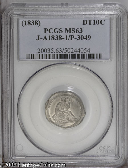 1838 Seated Liberty Dime Splasher J-A1838-1, P-3049, R.8. MS63 PCGS