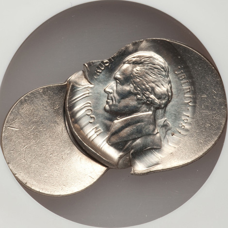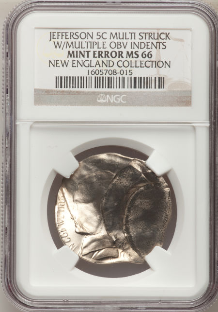 Undated Jefferson Nickel--Multiple Struck with Multiple Obverse Indents--MS66 NGC