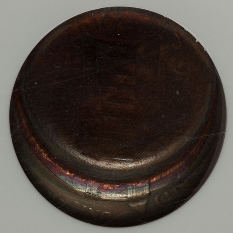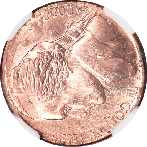 Undated Jefferson Nickel--Double Struck, Saddle Struck on a Cent Blank--MS64 Red NGC