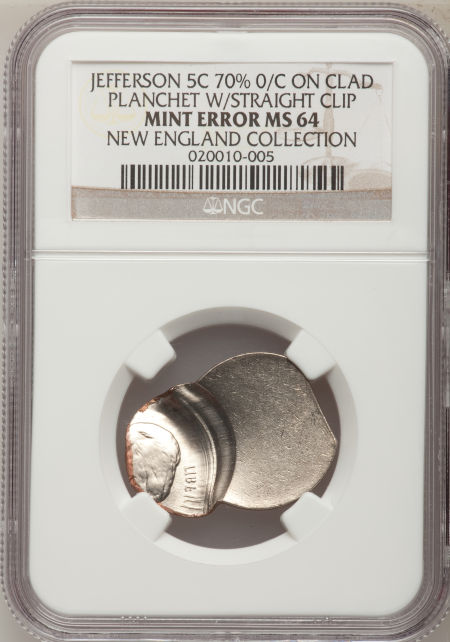 Undated Jefferson Nickel--Struck 70% Off Center on a Clad Planchet With a Straight Clip--MS64 NGC