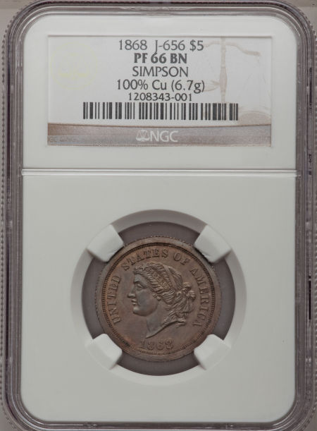 1868 $5 Dual Denomination $5-25 Francs, Judd-656, Pollock-729, Low R.7, PR66 Brown NGC