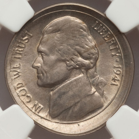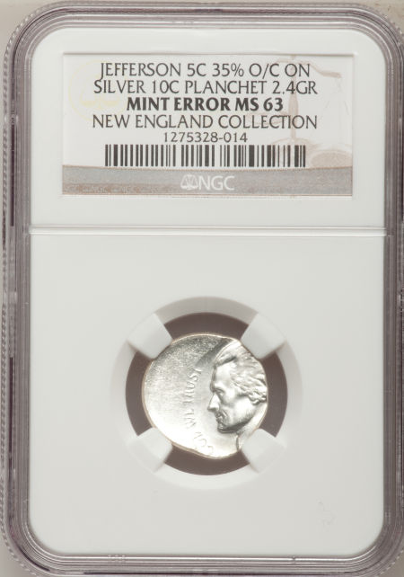 Undated Jefferson Nickel--Struck 35% Off Center on a Silver Dime Planchet--MS63 NGC