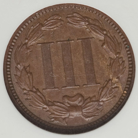 1871 Three Cent Nickel--Struck on Cent Stock--MS62 Brown NGC