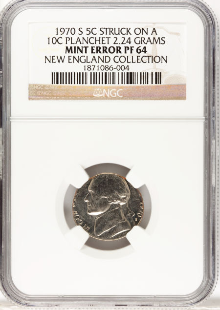 1970-S 5C Jefferson Nickel--Struck on a Dime Planchet--PR64 NGC