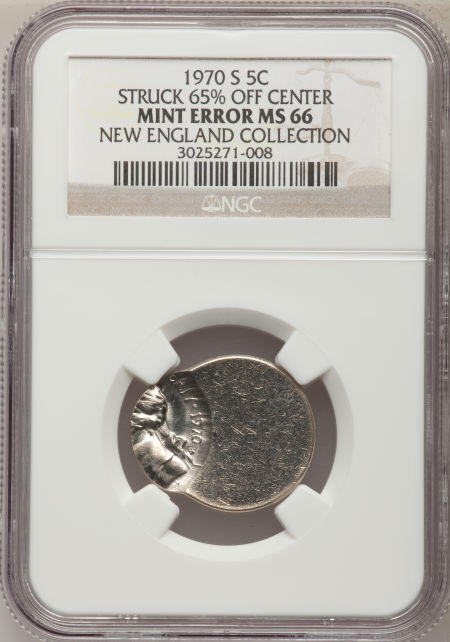 1970-S Jefferson Nickel--Struck 65% Off Center--MS66 NGC