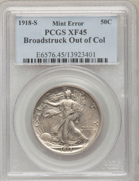 1918-S Walking Liberty Half--Broadstruck out of Collar--XF45 PCGS