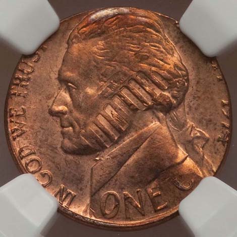 1974 Jefferson Nickel--Struck on a 1974 Lincoln Cent--MS65 Red and Brown NGC