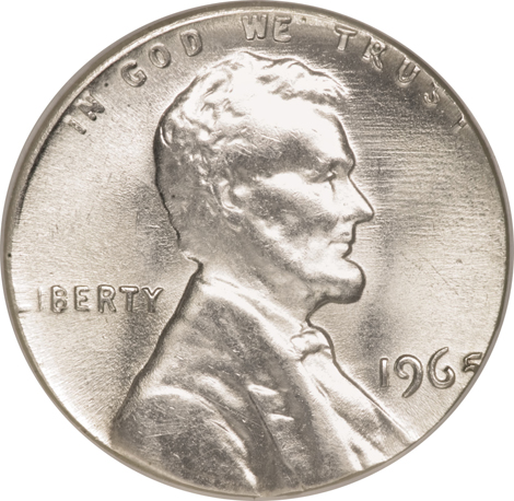 1965 Lincoln Cent--Struck on a 90% Silver Dime Planchet--MS63 NGC