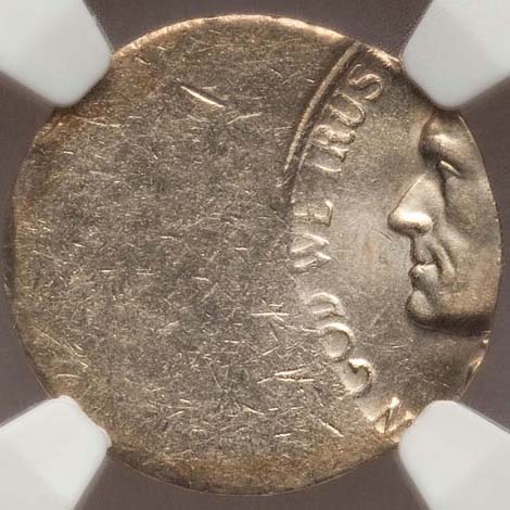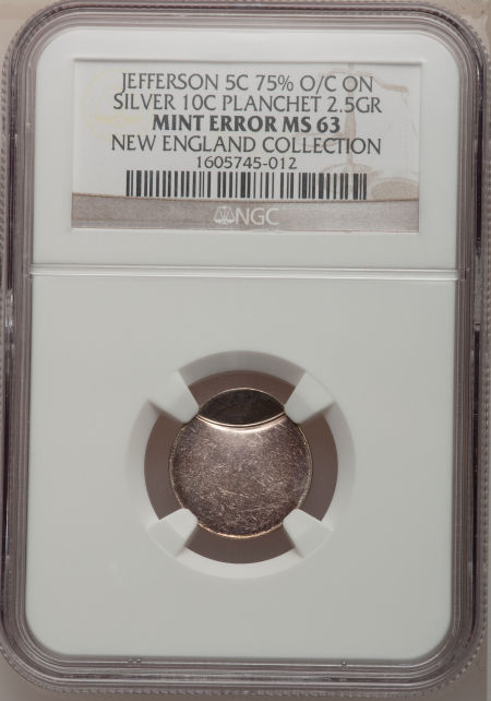 Undated Jefferson Nickel--Struck 75% Off-Center on a Silver Dime Planchet--MS63 NGC