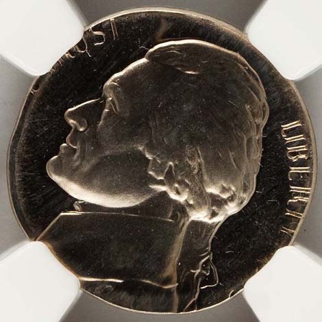 Undated Jefferson Nickel--Struck 70% Off-Center, Obverse Brockage--MS64 NGC