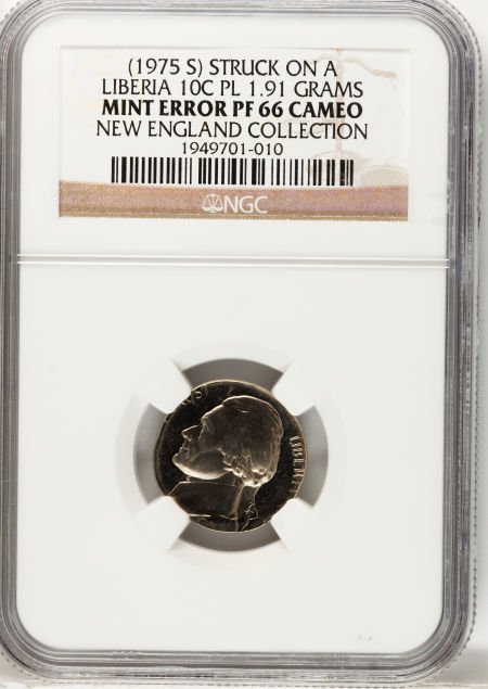 1975-S Jefferson Nickel--Struck on a Liberia 10C Planchet--PR66 Cameo NGC
