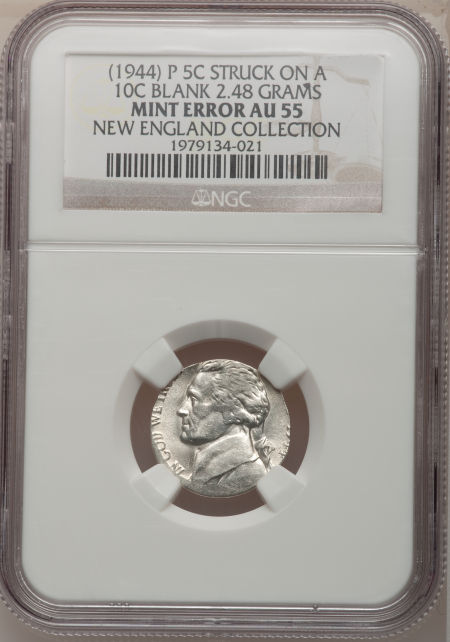 1944-P Jefferson Nickel--Struck on a Dime Planchet--AU55 NGC