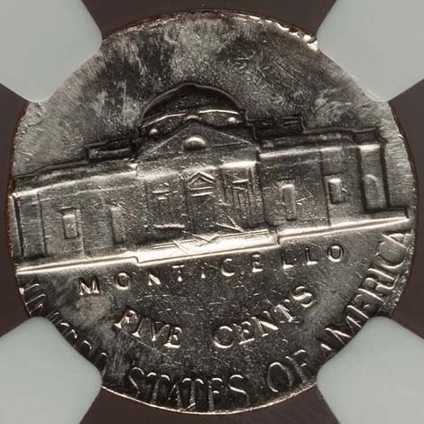 1949-S Jefferson Nickel--Struck 10% Off-Center--MS66 Five Full Steps NGC