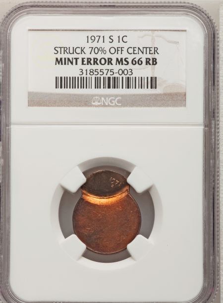 1971-S Lincoln Cent--Struck 70% Off Center--MS66 Red and Brown NGC
