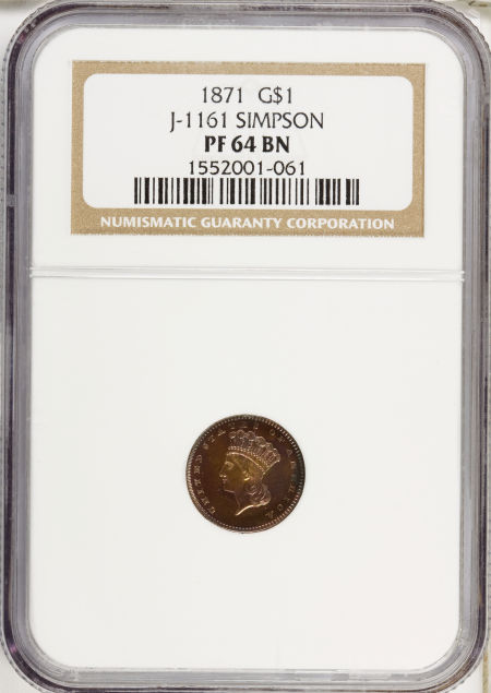 1871 Gold Dollar, Judd-1161, Pollock-1303, R.8, PR64 Brown NGC