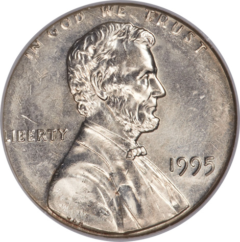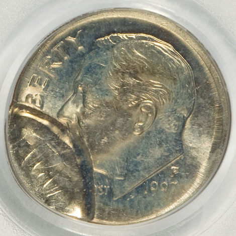 1995 Roosevelt Dime--Struck With Cent Obverse Die--MS64 NGC