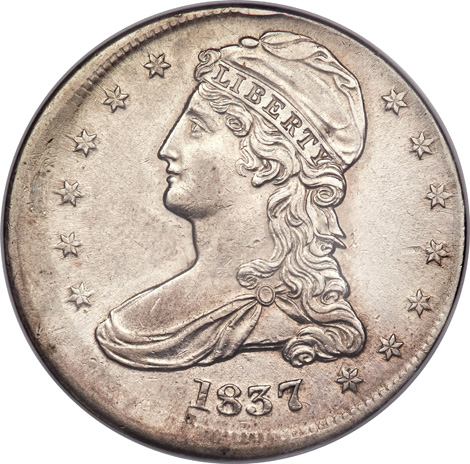 1837 Reeded Edge Bust Half Dollar--Struck 5% Off Center--AU58 NGC