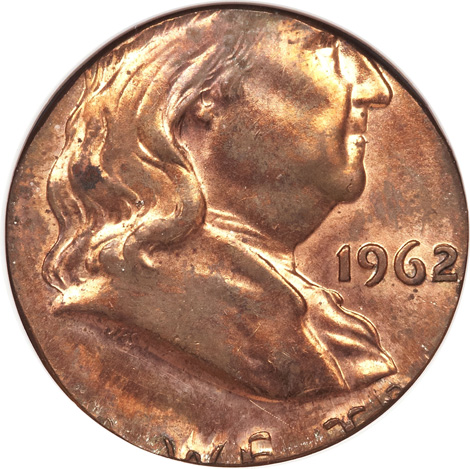 1962 Franklin Half--Struck on a Cent Planchet--MS61 Red and Brown NGC
