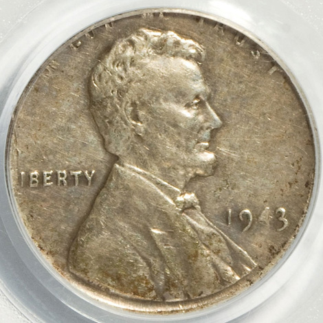 1943 Lincoln Cent--Struck on a Silver Dime Planchet--XF45 PCGS