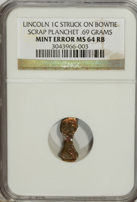 Undated Lincoln Memorial Cent--Struck on Bowtie Scrap Planchet--MS64 Red and Brown NGC