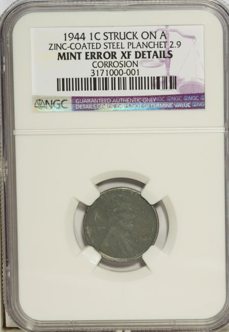 1944 --On a Zinc-Plated Steel Planchet, Corrosion--NGC. XF Details