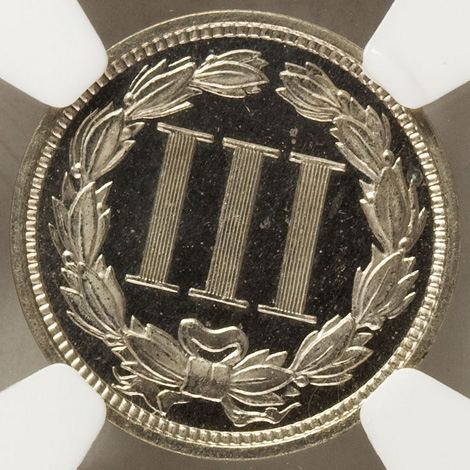 1868 Three Cent Nickel--Obverse Lamination--PR65 Cameo NGC