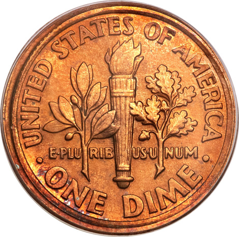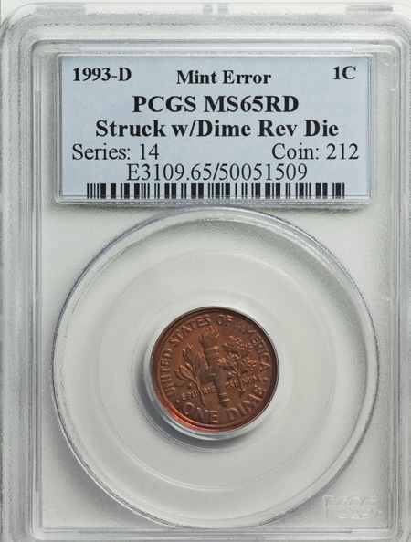 1993-D Lincoln Cent--Struck with Dime Reverse Die--MS65 Red PCGS