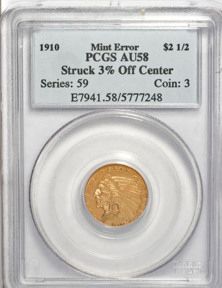1910 Indian Quarter Eagle--Struck 3% Off Center--AU58 PCGS