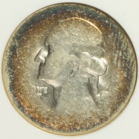 ND Jefferson Nickel--55% Off Center on 90% Sliver 10C PL 2.5G--MS61 NGC