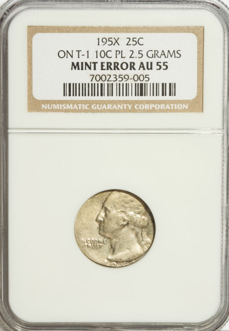 195X Washington Quarter--On T-1 10C Planchet 2.5 Grams--AU55 NGC
