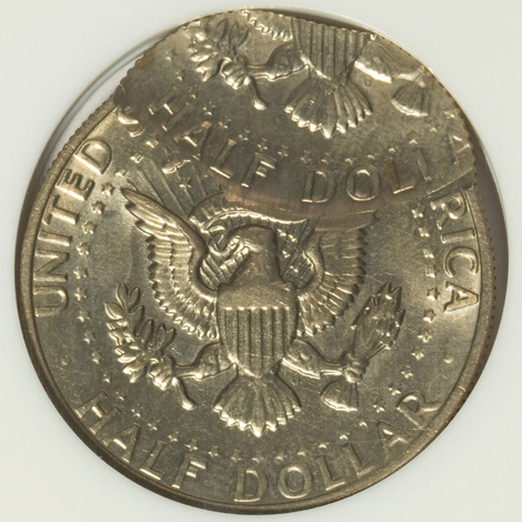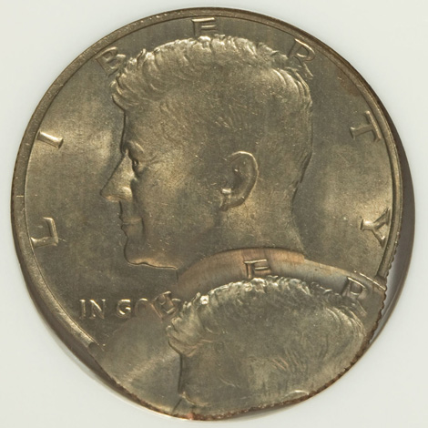 Undated Kennedy Half Dollar--Struck Twice, Second Strike 65% Off-Center, Chain Edge--MS65 NGC