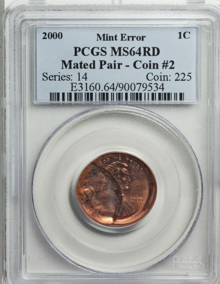 2000 Lincoln Cent--Mated Pair Con #1--MS65 Red PCGS and a Lincoln Cent--Mated Pair Coin #2--MS64 Red PCGS