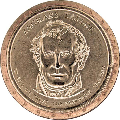 NGC has certified a Zachary Taylor Presidential $1 coin that bears the date 2010 D. The Zachary Taylor coin was the fourth Presidential dollar released in 2009 and should correctly bear the date 2009, not 2010. This is the first time that the wrong date has been reported on an edge-lettered US dollar.