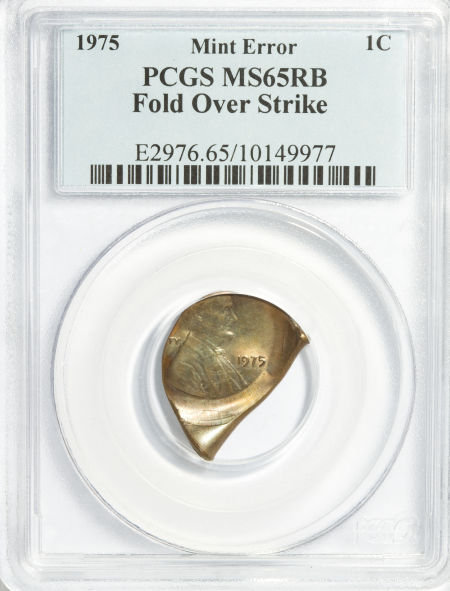 1975 Lincoln Cent--Fold Over Strike--MS65 Red and Brown PCGS