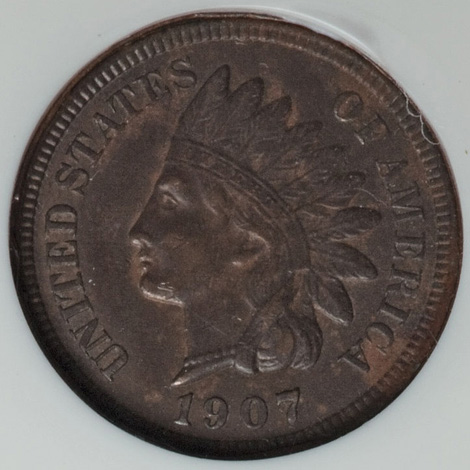 1907 Indian Cent--Struck Through Reverse Die Cap--AU50 NGC
