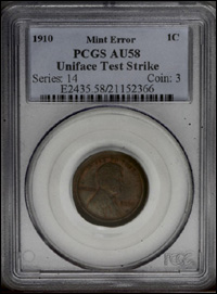 1910 1C Lincoln Cent Obverse Uniface Test Strike. AU58 PCGS.