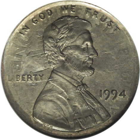 1994-P Lincoln Cent--Struck on 1969 Denver Dime