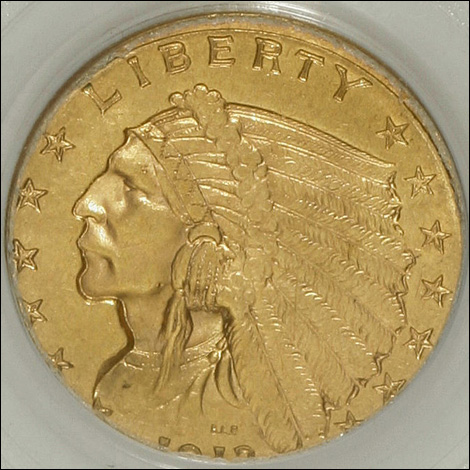 1912 $2½ Indian Gold--Struck 10% Off-Center