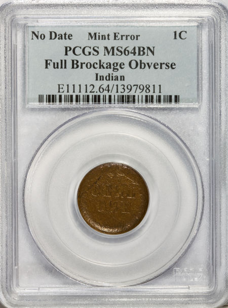 Undated Indian Cent--Full Brockage Obverse--MS64 Brown PCGS