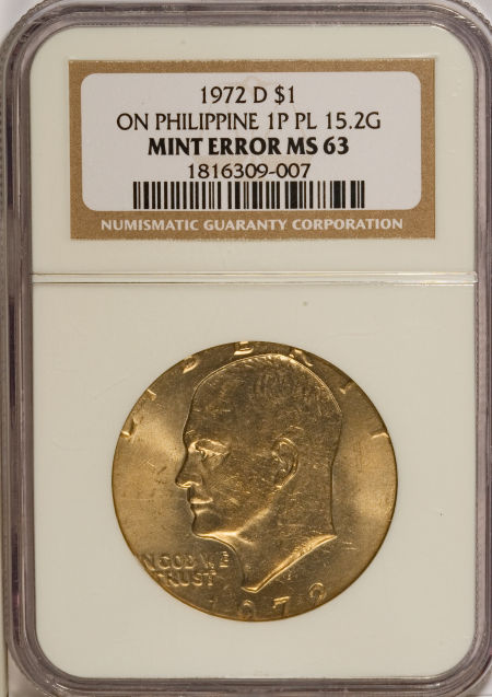 1972-D $1 Eisenhower Dollar--Struck on a Philippine Piso Planchet--MS63 NGC