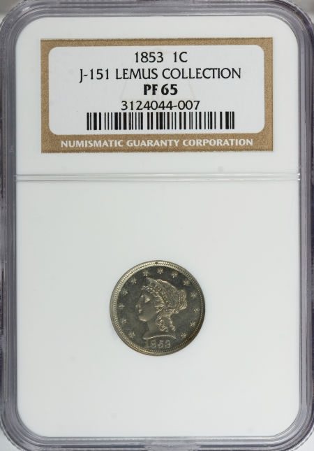 1853 P1C One Cent, Judd-151, Pollock-178, Low R.6, PR65 NGC
