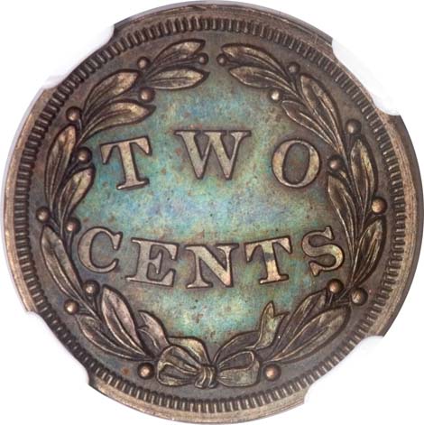 1836 P2C Two Cents, Judd-54, Pollock-57, Low R.6, PR64 Brown NGC