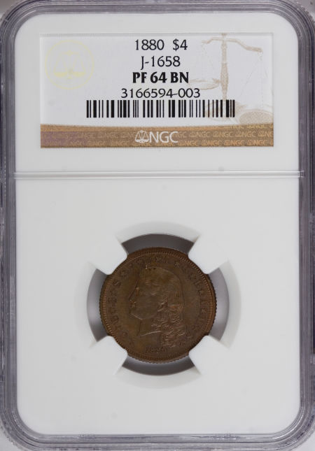 1880 $4 Flowing Hair Four Dollar, Judd-1658, Pollock-1858, Low R.7, PR64 Brown NGC