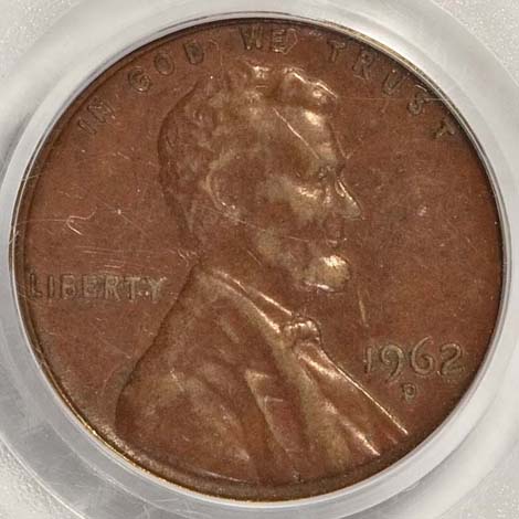 1962-D 1C Lincoln Cent--Full Brockage Reverse--AU53 PCGS