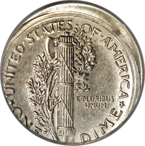 1928-S Mercury Dime--Struck 5% Off-Center--MS65 PCGS