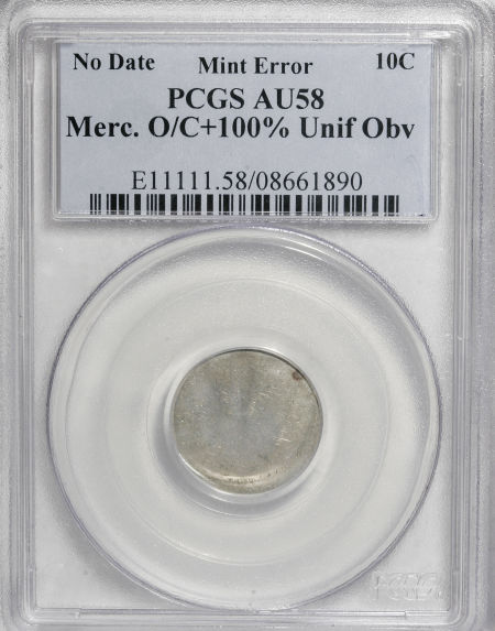 Undated Mercury Dime--Off Center, 100% Uniface Obverse--AU58 PCGS