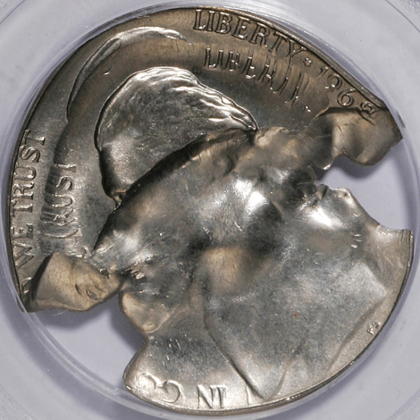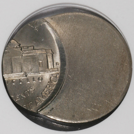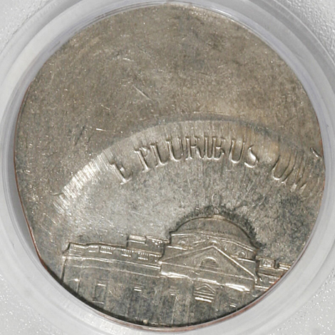 Undated Jefferson Nickel--Struck 40% Off-Center on a Clad Dime Planchet--MS62 PCGS